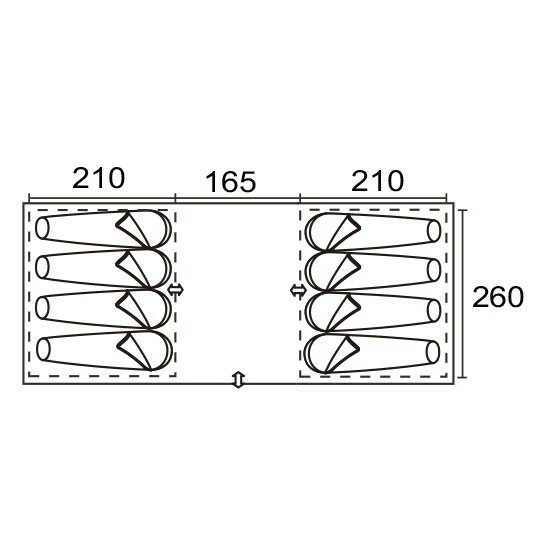 Le tapis de sol cousu au double toit recouvre la totalité de la tente. Cela vous offrira des vacances tranquilles, à l’abri des insectes, des intempéries et des courants d’air. Pour plus de confort, à l’entrée, le tapis de sol peut être abaissé ou levé, à votre convenance.